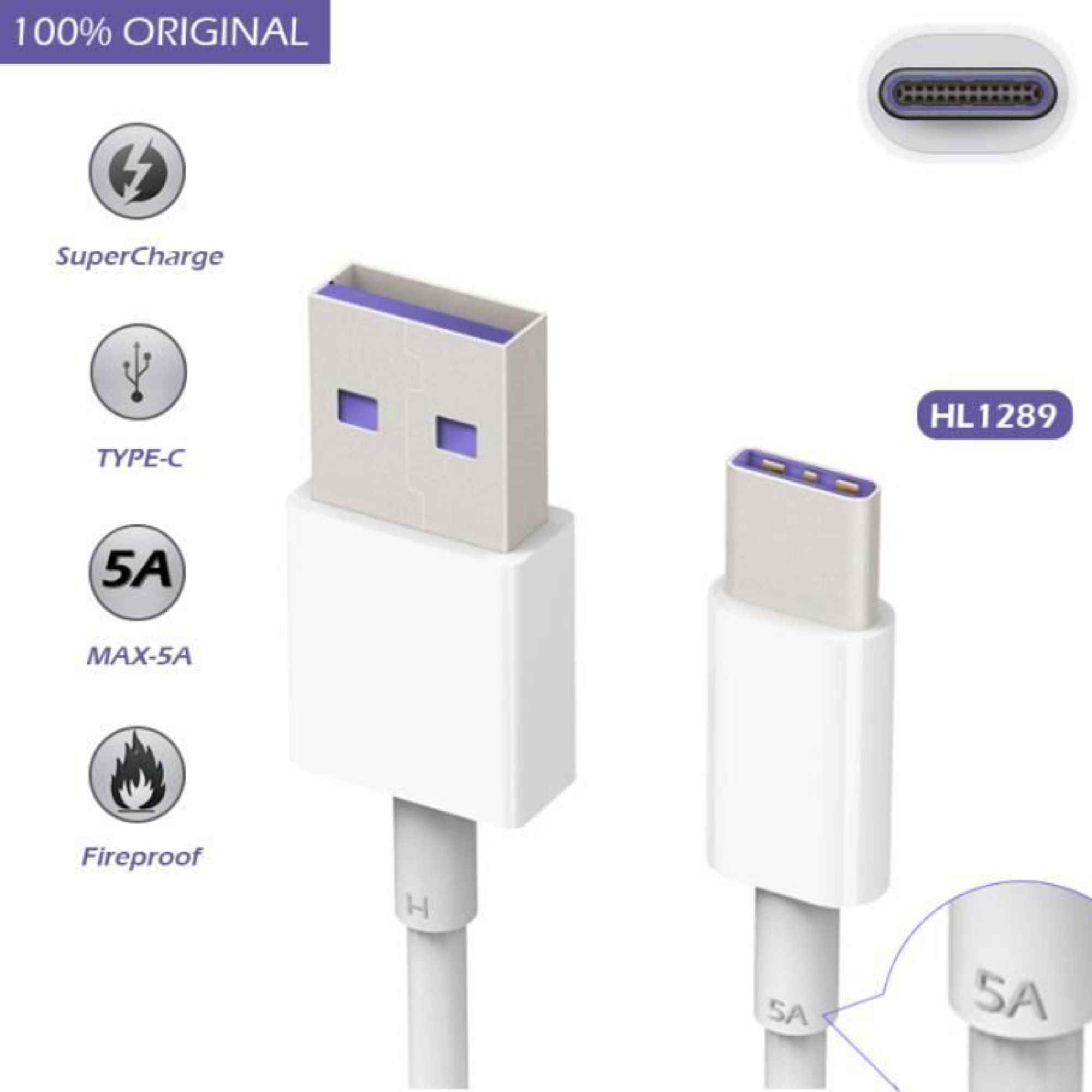 Câble USB 3.1 5a Type C pour recharge rapide, cordon d'origine pour téléphone Huawei P30 Pro lite mate 20 P10 Plus et android