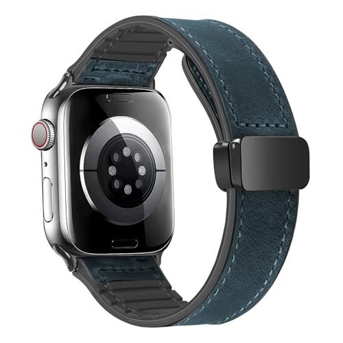 Compatible avec Apple Watch Bracelet Cuir 44/45/46/42/49/40/41/38mm, Smartwatch Bracelets de Remplacement Femmes Hommes pour iWatch Ultra 2 Série 10 9 8 7 SE 6 5 4 3 2 1 (BLEU, 38/40/41/42(S10))