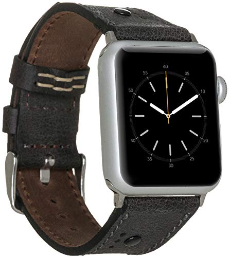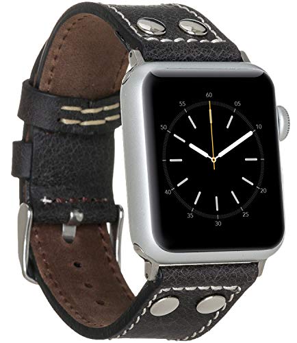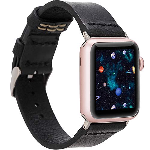 Burkley Bracelet de rechange en cuir pour Apple Watch de 38/40 mm et 42/44 mm - Vintage - Bracelet de rechange compatible avec toutes les montres Apple - Fait main (42/44 mm, noir - BA4)