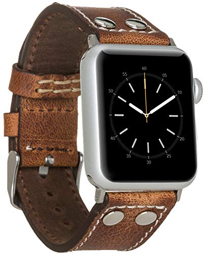 Burkley Bracelet de rechange en cuir pour Apple Watch de 38/40 mm et 42/44 mm - Vintage - Bracelet de rechange compatible avec toutes les montres Apple - Fait main (42/44 mm, marron - BA12)