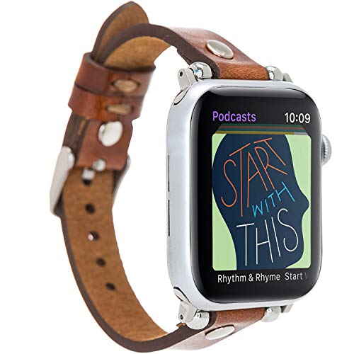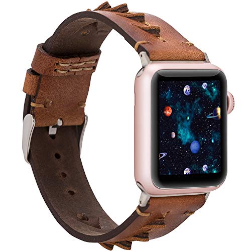 Burkley Bracelet de rechange en cuir pour Apple Watch de 38/40 mm et 42/44 mm - Vintage - Bracelet de rechange compatible avec toutes les montres Apple - Fabriqué à la main (38/40 mm, marron - BA12)
