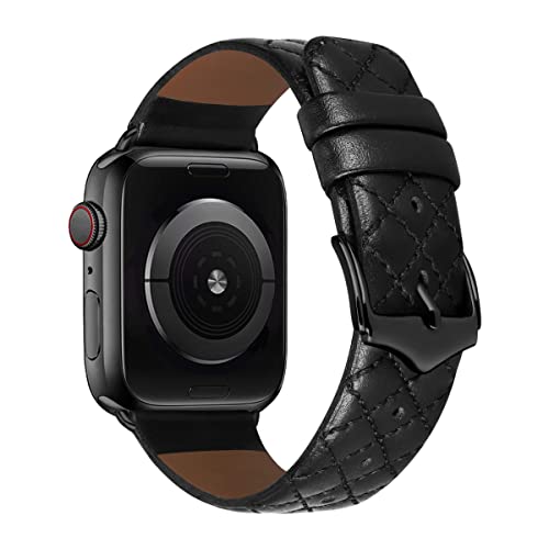 MroTech Compatible pour Bracelet Apple Watch 41mm 40mm 38mm Cuir Véritable Bracelet de Remplacement Compatible avec iWatch Séries 7 (41mm) SE Séries 6/5/4 (40mm) Séries 3/2/1 (38mm) - Grille Noir