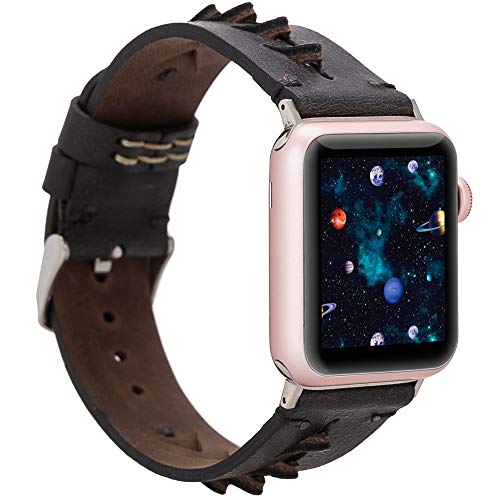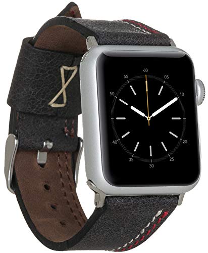 Burkley Bracelet de rechange en cuir pour Apple Watch de 38/40 mm et 42/44 mm - Vintage - Bracelet de rechange compatible avec toutes les montres Apple - Fait main (42/44 mm, noir - BA12)