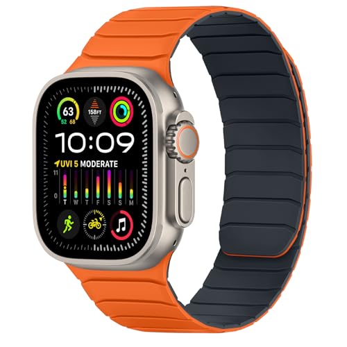 Tasikar Magnétique Bracelets Compatible avec Apple Watch 42mm(Series 11/Series 10) 41mm 40mm 38mm Silicone Bracelet à Boucle pour iWatch SE Series 11 10 9 8 7 6 5 4 3, Orange - Midnight
