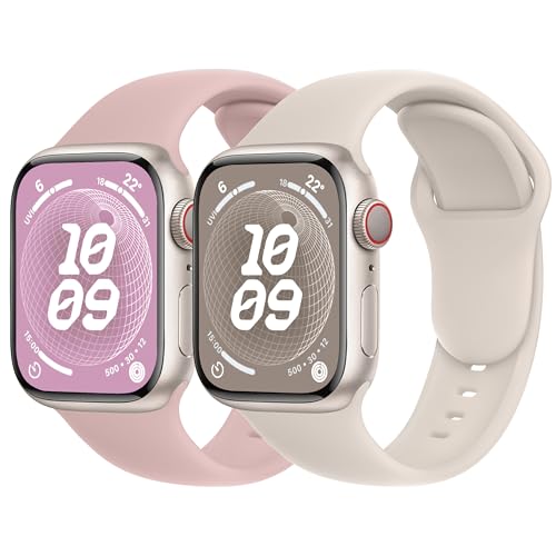 Tasikar Bracelet Magnétique Double Face Compatible avec Apple Watch 42(Serie 11/10) 41mm 40mm 38mm, Bande Sport en Silicone Souple pour iWatch SE série 11 10 9 8 7 6 5 4 3, Lumière d'étoile-Rose