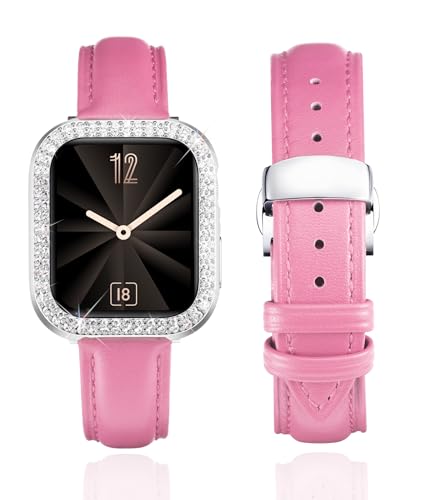 BINLUN Bracelet Compatible avec Apple Watch 40mm 41mm 42mm 44mm 45mm 46mm Femme Bracelets en Cuir avec Boîtier de Diamants Compatible avec iWatch Serie 11/10/9/8/7/6/5/4/SE3/SE2/SE(Rose Rouge Or Rose)