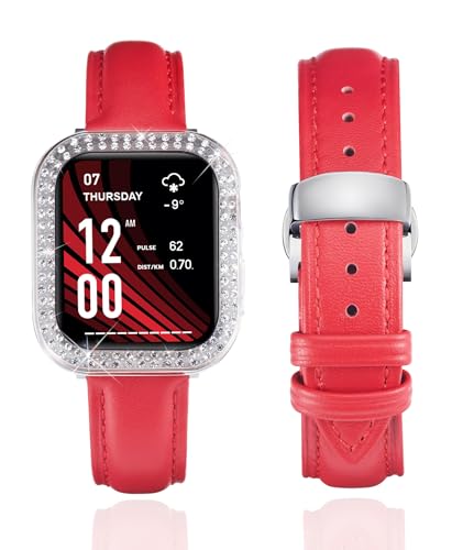 BINLUN Bracelet Compatible avec Apple Watch 40mm 41mm 42mm 44mm 45mm 46mm Femme Bracelets en Cuir avec Boîtier de Diamants Compatible avec iWatch Serie 11/10/9/8/7/6/5/4/SE3/SE2/SE(Rouge Transparent)