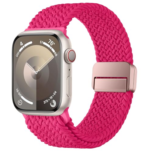 HITZEE Compatible avec Bracelet Apple Watch 49/46/45/44/42/41/40/38mm, Bracelet Élastique avec Fermoir Magnétique Conçus pour iWatch Ultra 2 Série 10 9 8 7 SE 6 5 4 (38/40/41/42, Framboise rouge)