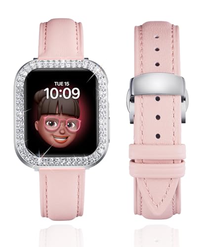 BINLUN Bracelet Compatible avec Apple Watch 40mm 41mm 42mm 44mm 45mm 46mm Femme Bracelets en Cuir avec Boîtier de Diamants Compatible avec iWatch Serie 11/10/9/8/7/6/5/4/SE3/SE2/SE(Rose Argent)