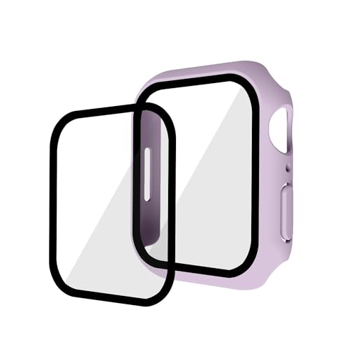 GANGANPRO Lot de 2 coques en polycarbonate rigide avec protecteur d'écran en verre trempé pour Apple Watch 7/8/9, coque ultra fine résistante aux rayures pour iWatch 41 mm, violet clair