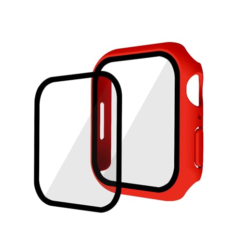 GANGANPRO Coque en polycarbonate rigide 2 en 1 avec protecteur d'écran en verre trempé pour Apple Watch 7/8/9, coque ultra fine résistante aux rayures pour iWatch 41 mm, rouge