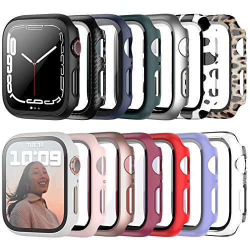 JZK 12 Morceaux de Couverture pour Apple Watch 7 41 mm, Coque Durcie avec Protection d'Écran en Verre, HD Anti-Rayures