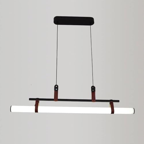 Lampe suspendue linéaire de 31,5 pouces, longue lustre à LED dorée, compatible avec la table de salle à manger, tube en cuir minimaliste noir moderne, lampe suspendue au plafond industriel, applique