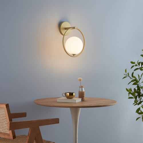 HAvern Applique Murale Boule créative Applique Murale Moderne Chic en Verre Laiteux Applique Murale en Finition dorée 6" Applique Murale Moderne pour café Salon Chambre