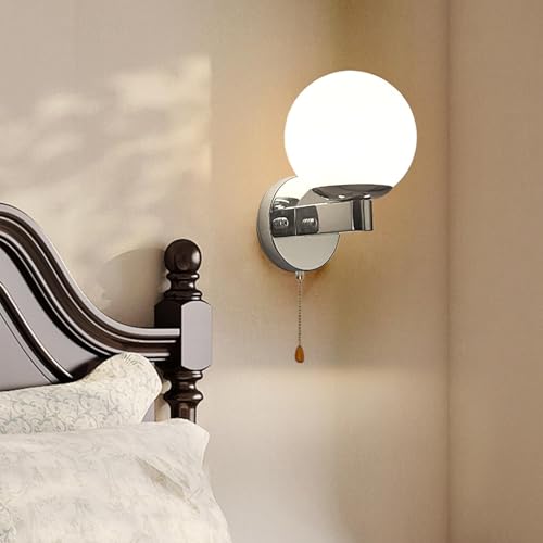 CRFASIBE Applique Murale Boule en Verre, Lumière Chaude, E27 Lampe Murale avec Interrupteur à Cordon pour Chambre, Salle de bain, Miroir, Salon, Cuisine (Argent)