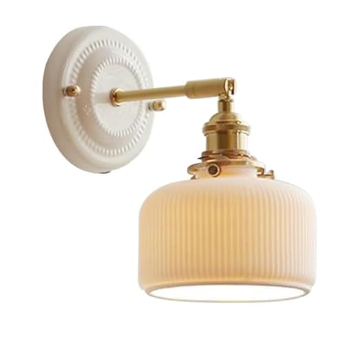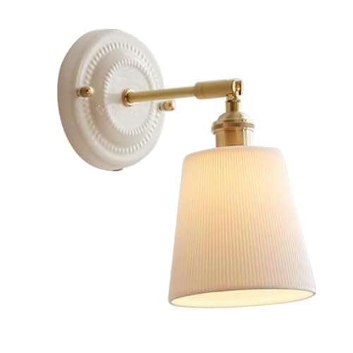 ICEMOB Luminaire mural en laiton japonais, bras pivotant d'intérieur, appliques murales réglables avec interrupteur, couvercle en céramique blanche, applique murale pour chambre à coucher, lampes mura