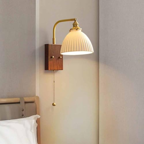Appliques murales d'intérieur Post-Modernes en Verre avec Interrupteur à Tirer, Applique Murale Simple, Support d'angle réglable, Applique Murale en cuivre pour Salon, Chambre à couc