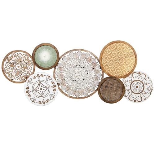 DRW Applique murale en bois avec cercles ethniques en naturel 4,5 x 117 x 50 cm