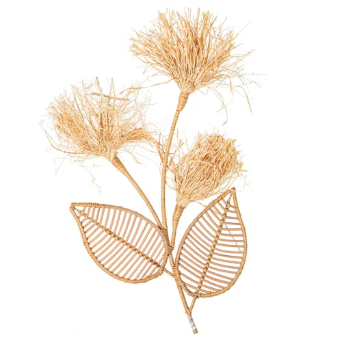 DRW Applique murale avec fleurs de rotin en naturel 3 x 33 x 65 cm