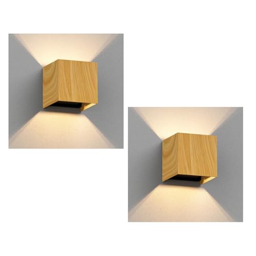 ledscom.de 2 pièces Applique murale CUBEL pour l'extérieur, IP65, up/downlight, aspect bois, carré, lampe LED incluse, max. 3,5 W, 485lm, blanc chaud