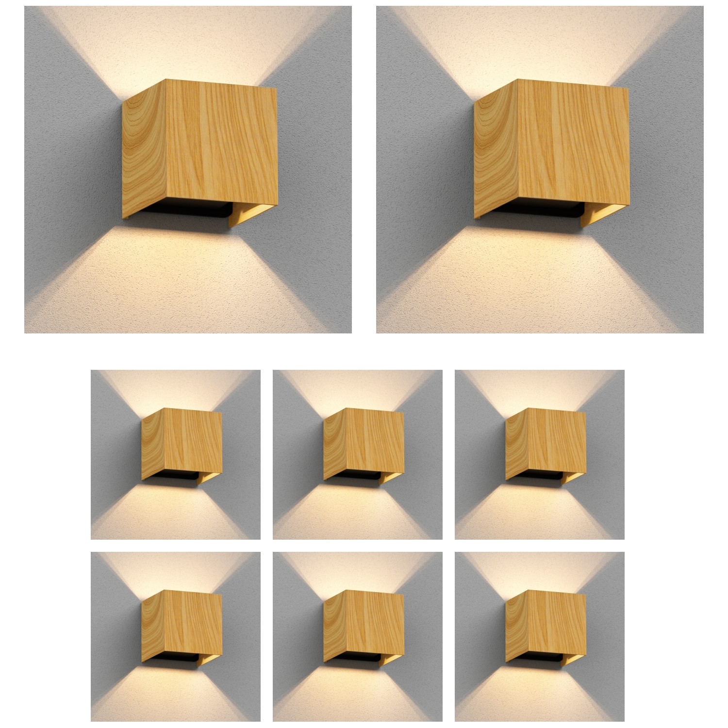 ledscom.de 8 pièces Applique murale CUBEL pour l'extérieur, IP65, up/downlight, aspect bois, carré, lampe LED incluse, 4,4 W, 596lm, blanc