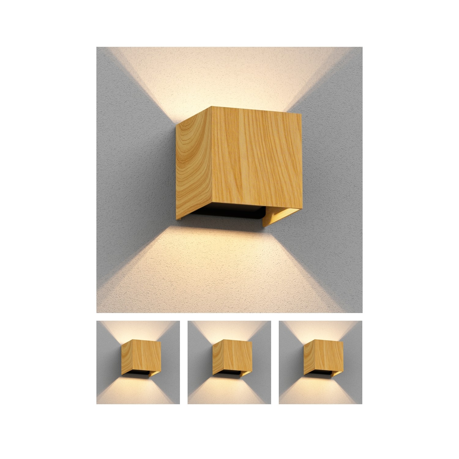ledscom.de 4 pièces Applique murale CUBEL pour l'extérieur, IP65, up/downlight, aspect bois, carré, lampe LED incluse, max. 3,5 W, 485lm, blanc chaud