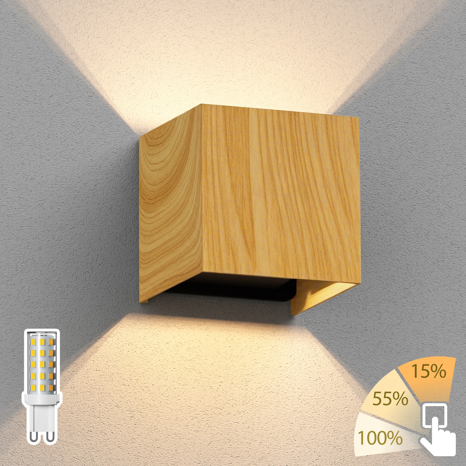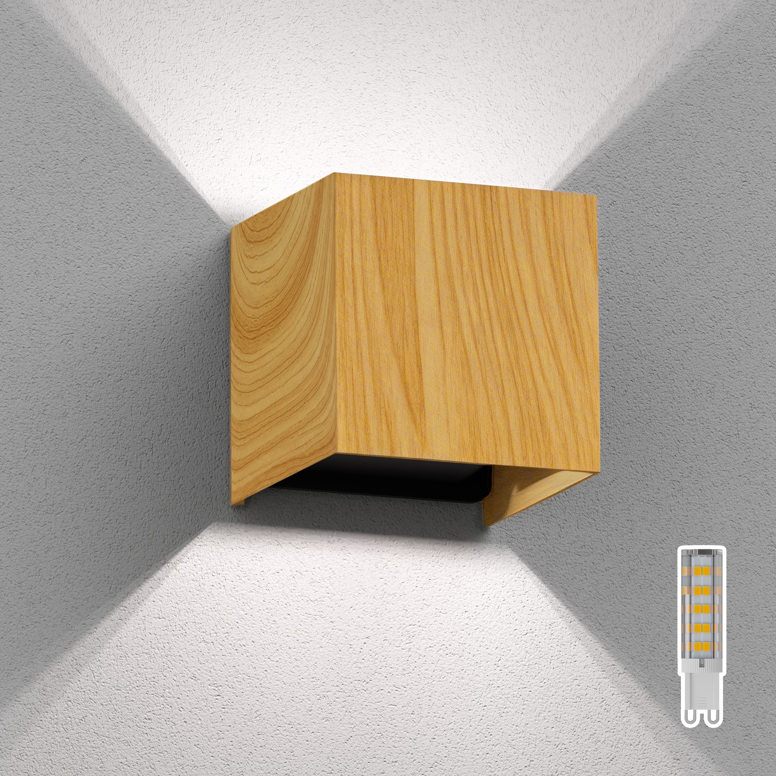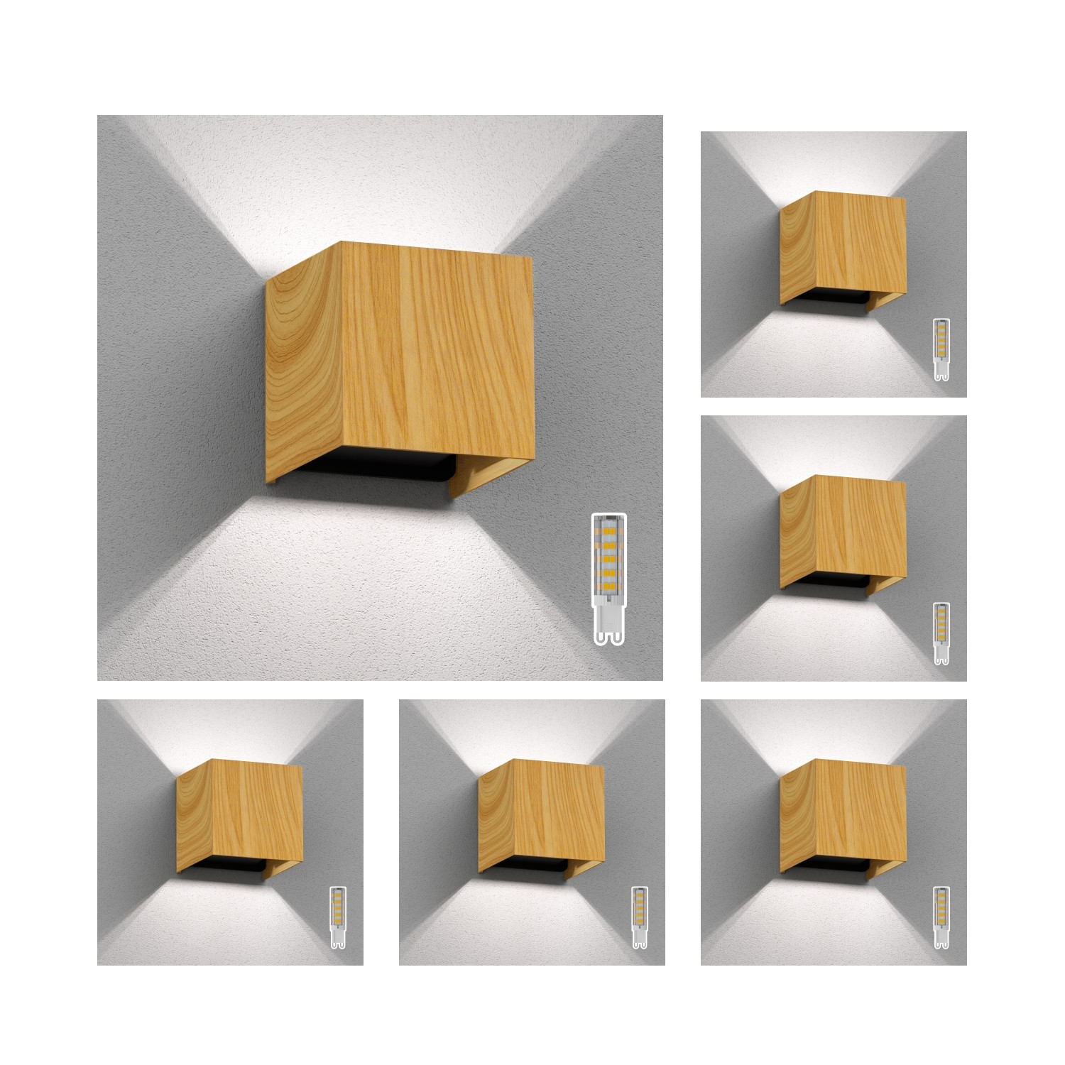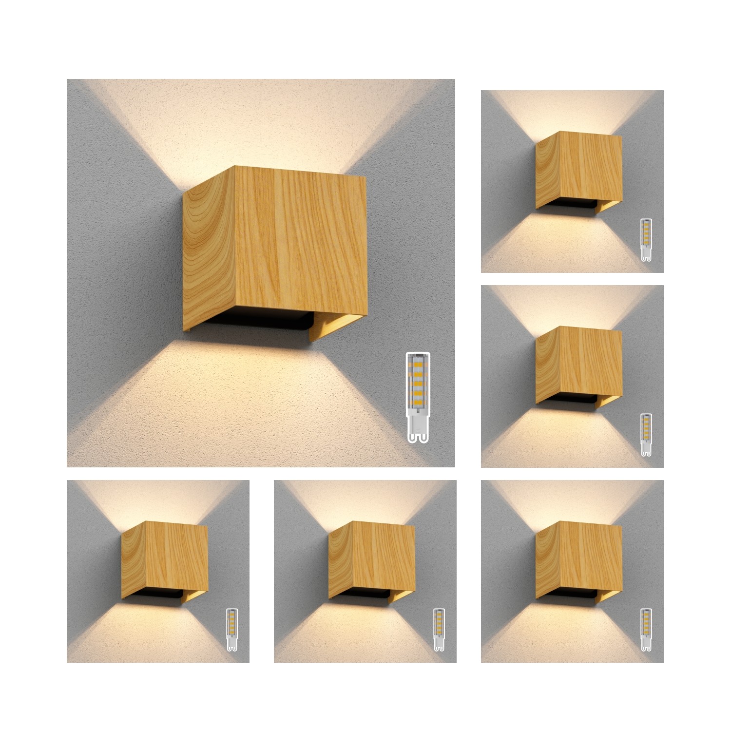 ledscom.de 6 pièces Applique murale CUBEL pour l'extérieur, IP65, Up-/Downlight, aspect bois, carrée, 1x G9 max. 10W