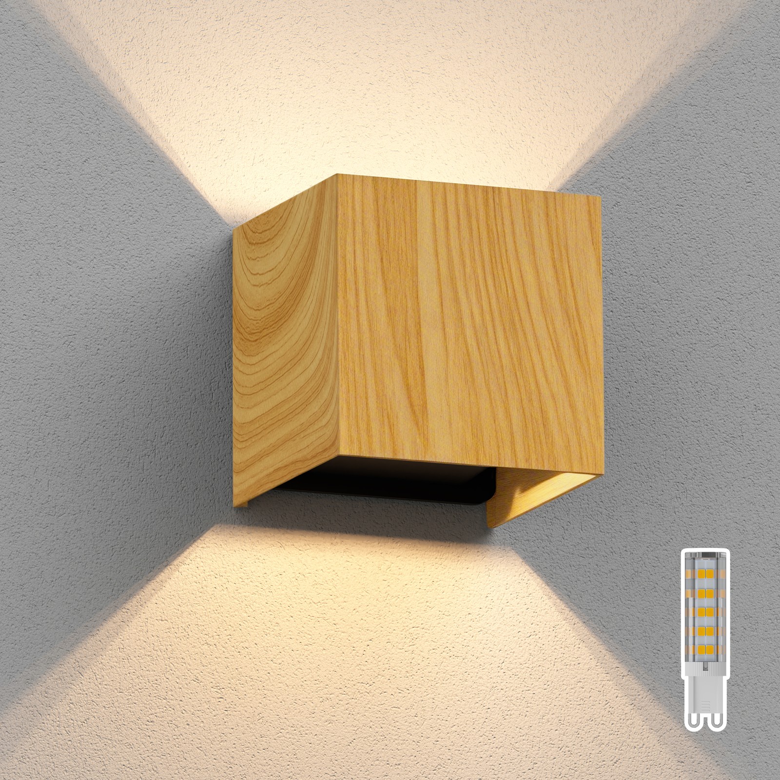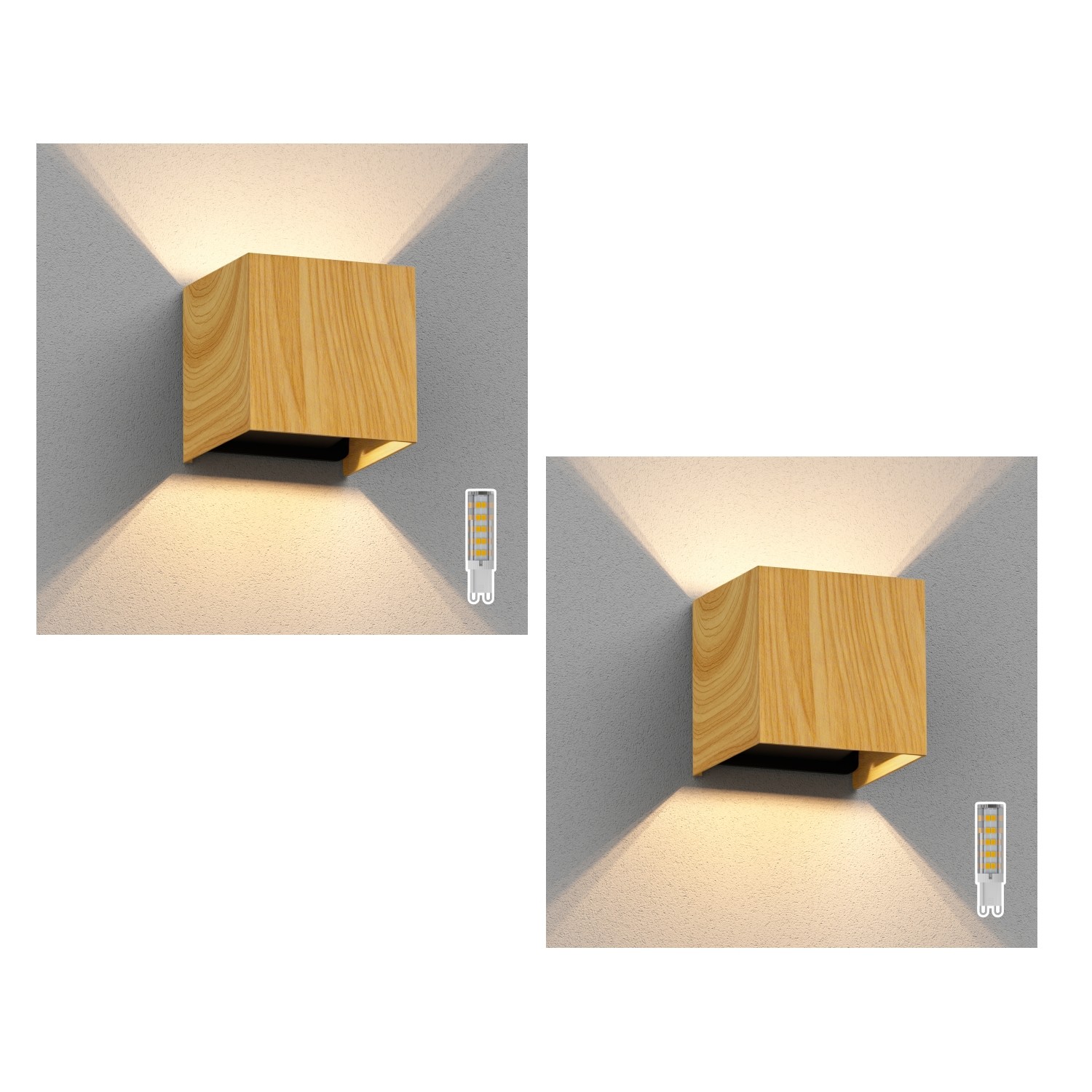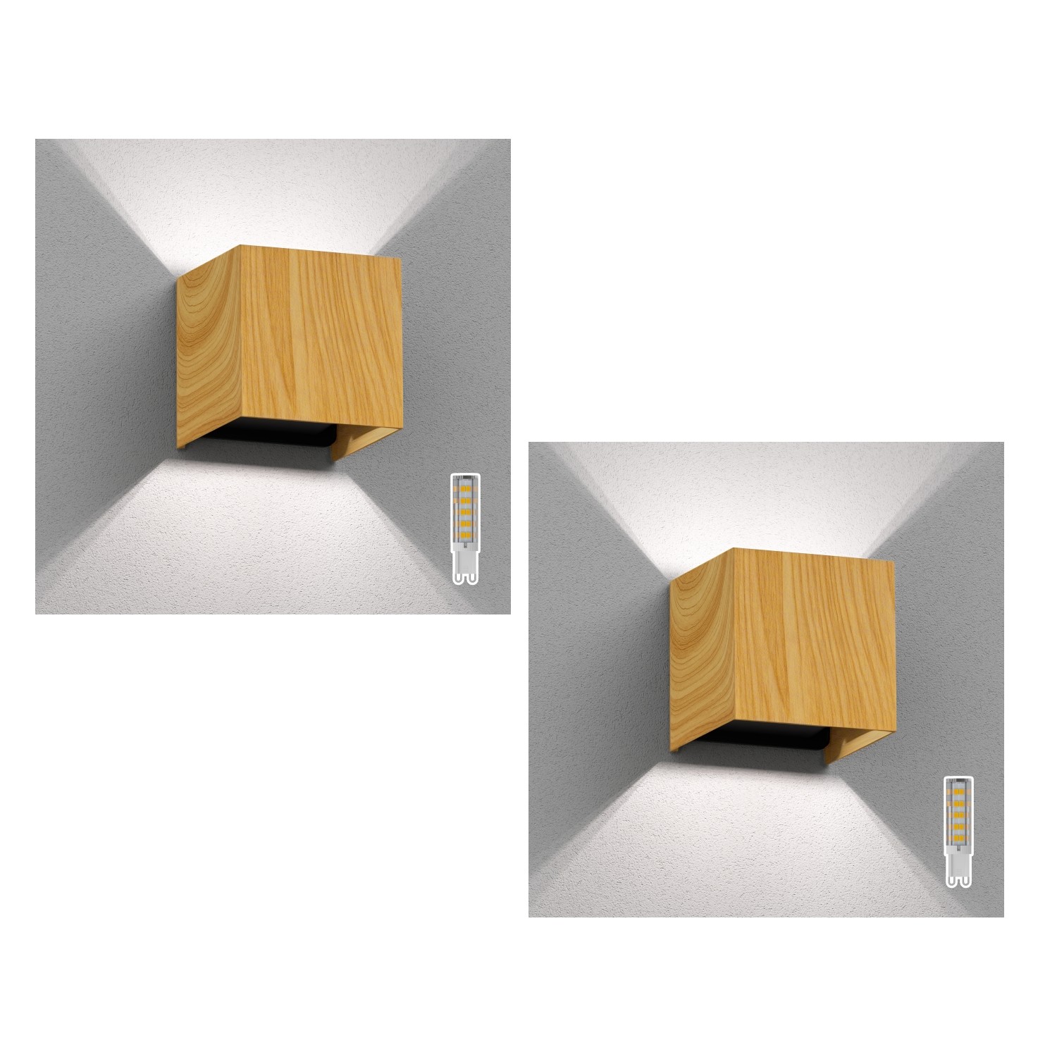 ledscom.de 2 pièces Applique murale CUBEL pour l'extérieur, IP65, Up-/Downlight, aspect bois, carrée, 1x G9 max. 10W