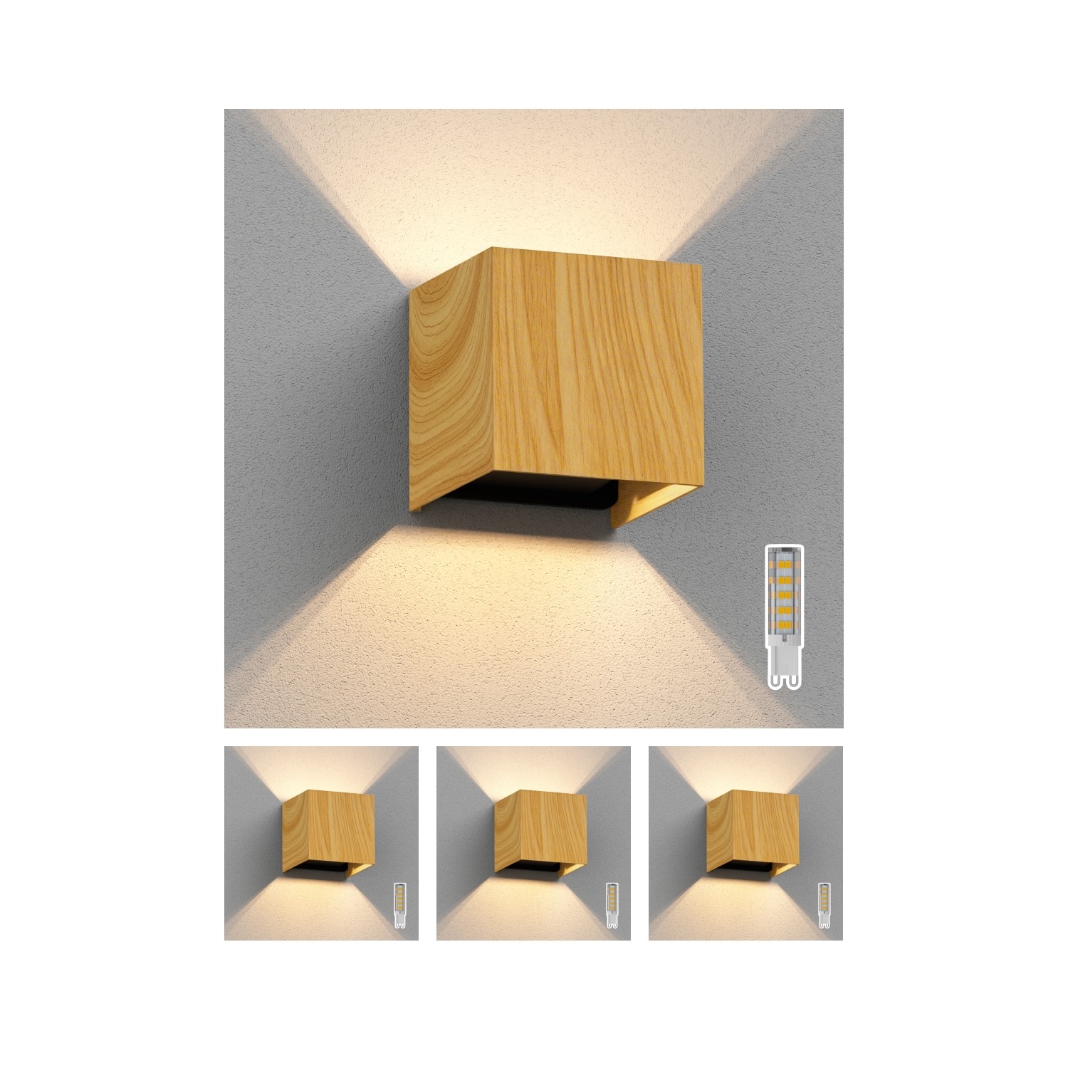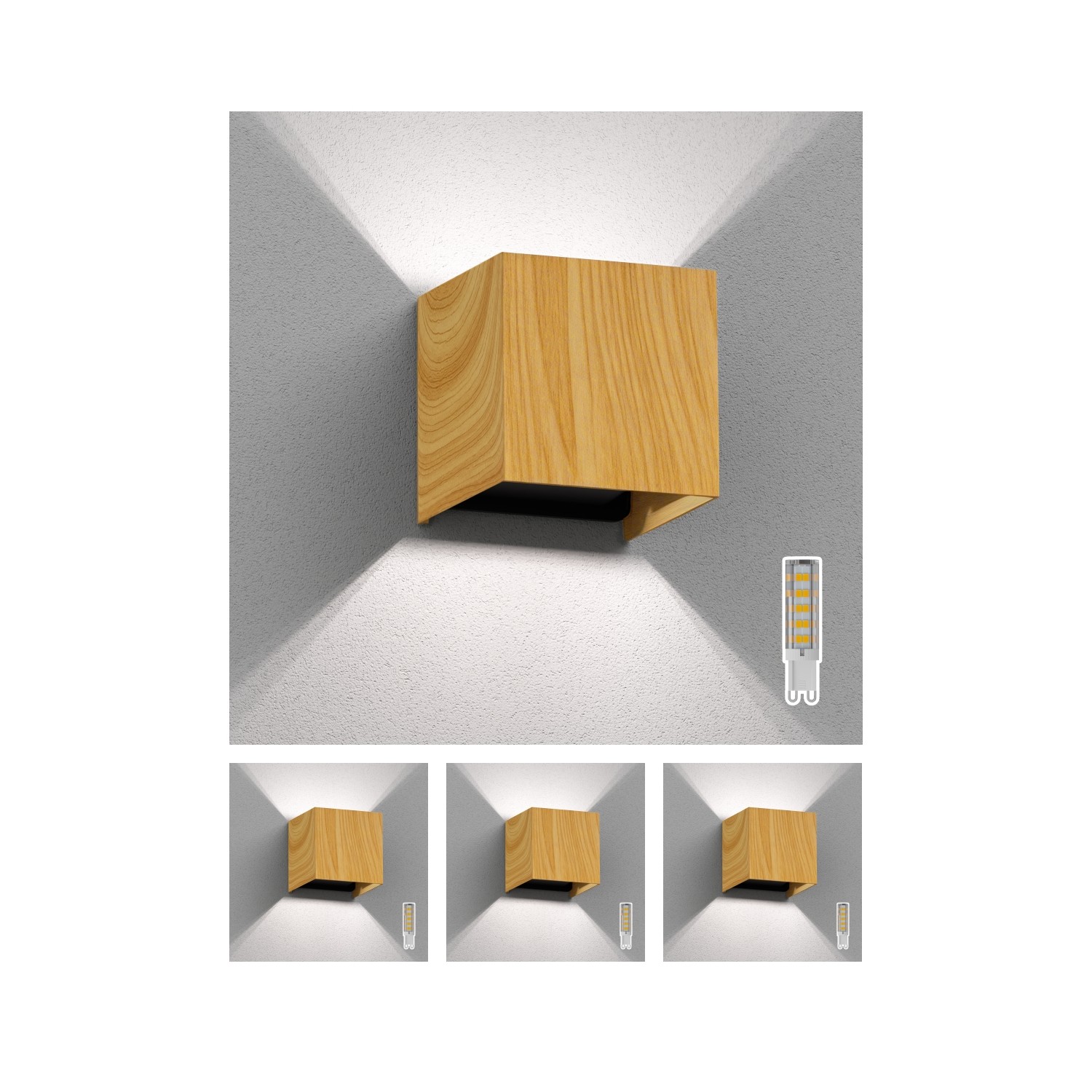 ledscom.de 4 pièces Applique murale CUBEL pour l'extérieur, IP65, Up-/Downlight, aspect bois, carrée, 1x G9 max. 10W