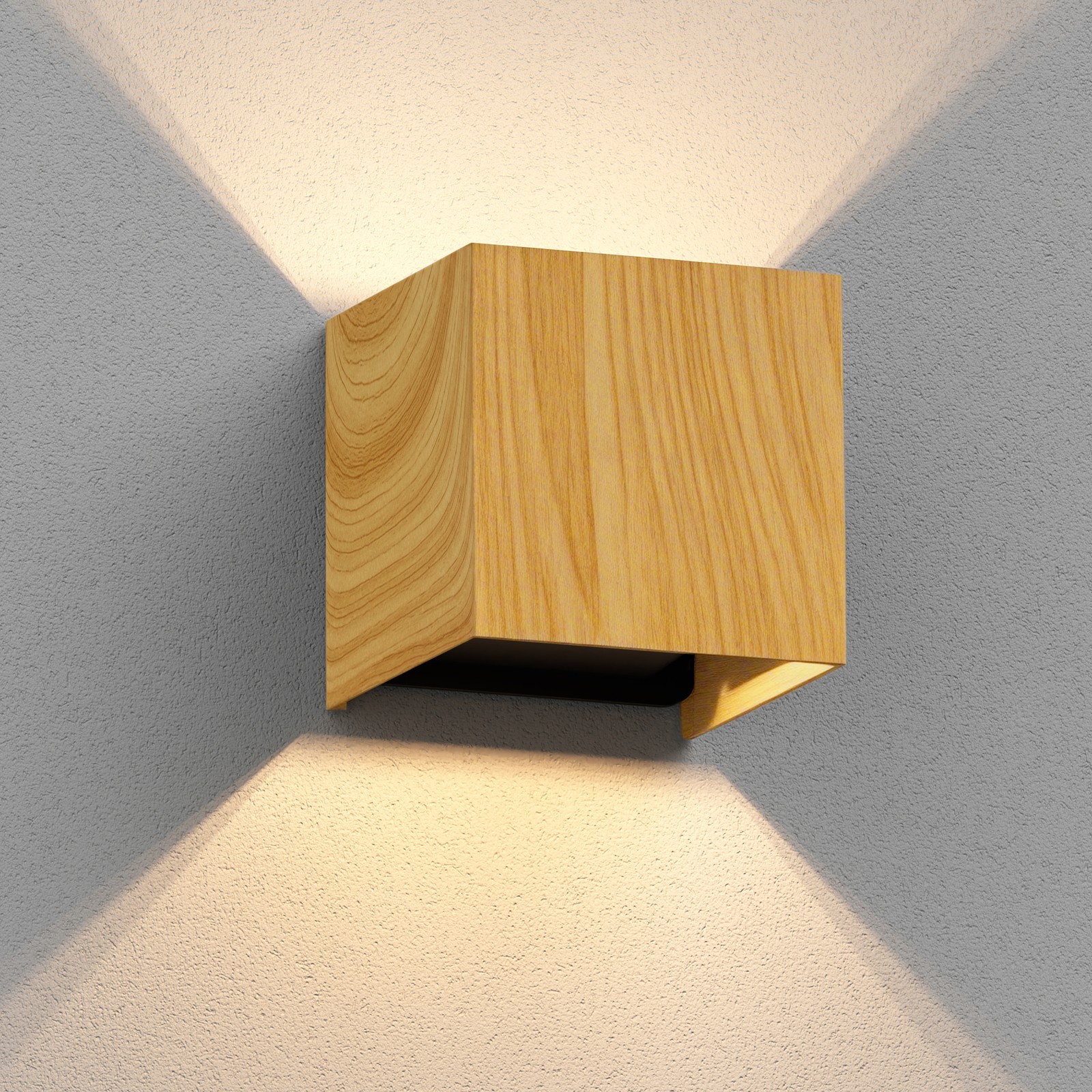 Applique murale CUBEL pour extérieur IP65 up/downlight aspect bois carré incl.