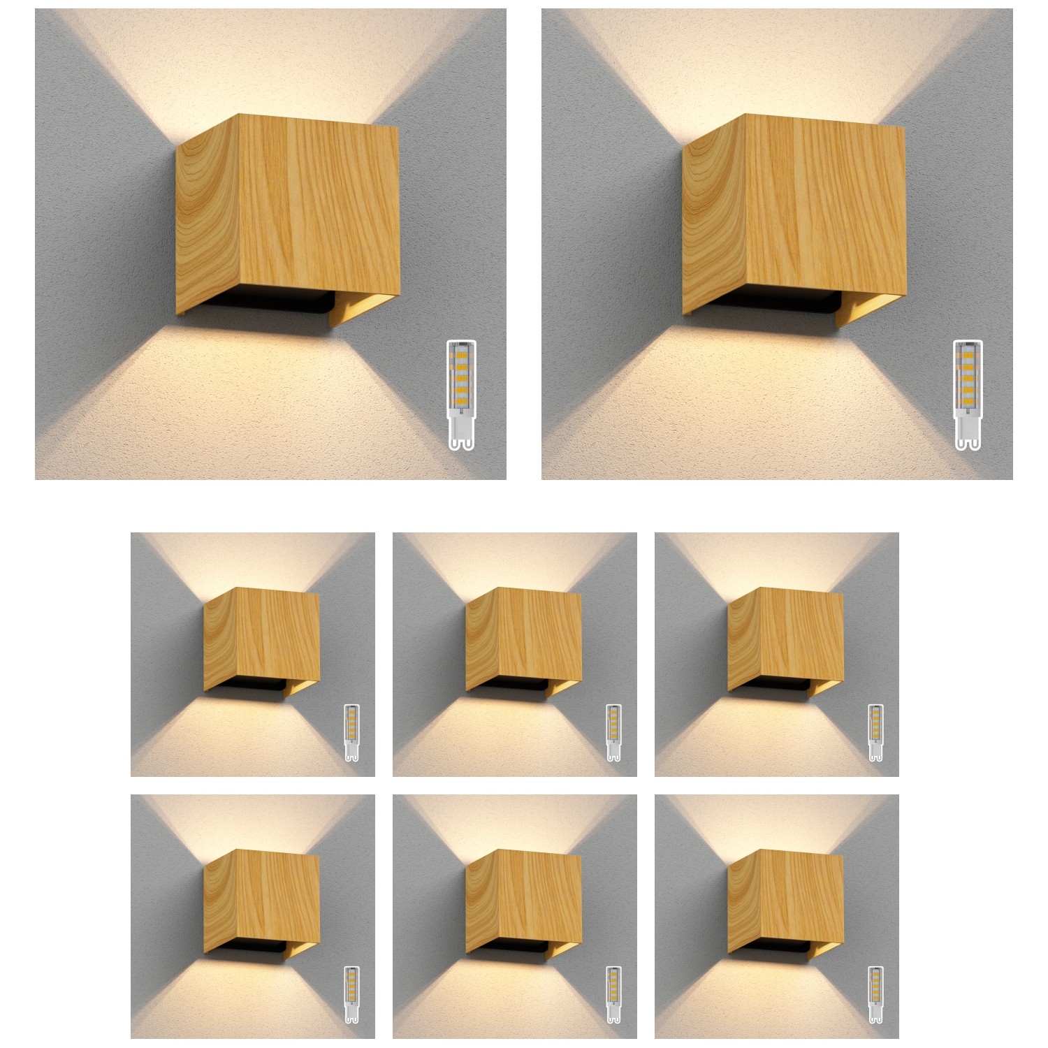 ledscom.de 8 pièces Applique murale CUBEL pour l'extérieur, IP65, Up-/Downlight, aspect bois, carrée, 1x G9 max. 10W