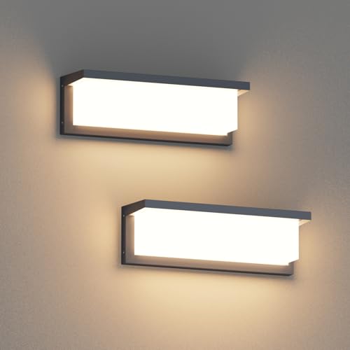 Coinmit 2 Piece Applique murale LED d'extérieur 36W, 3000K, 3500LM, IP65 Wandleuchten étanche, Applique murale en aluminium pour intérieur et extérieur, terrasse, balcon, Anthracite