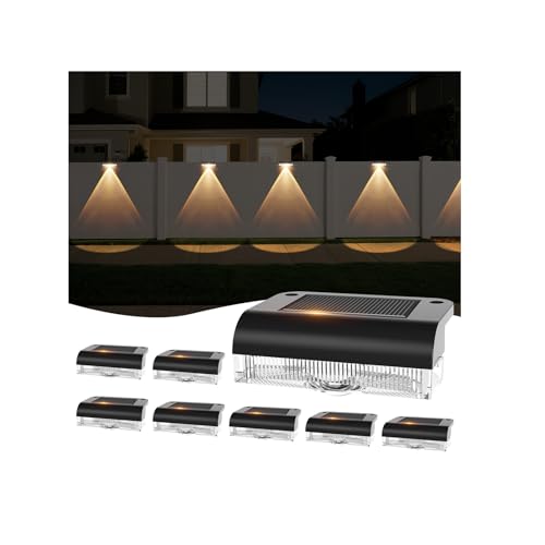 Applique Murale Solaire d'extérieur, 8 Pièces Lampe Solar LED Extérieur Jardin, Lumières de Clôture Solaires, Lampe Murale Solaire Pour Escaliers, Marches, Clôtures, Rampes, Cour, Terrasse