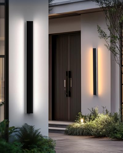 Coinmit 2 Piece Applique murale LED d'extérieur 36W, 3000K, 3500LM, IP65 Wandleuchten étanche, Applique murale en aluminium pour intérieur et extérieur, terrasse, balcon, Noir