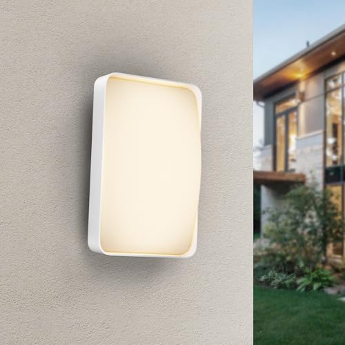 Klighten 12W Applique Murale Exterieur/Interieur Blanc Chaud 3000K, Aluminium+PC Lampe Murale LED Mordern, Lumiere Extérieur Imperméable IP65 pour Jardin Entrée Terrasse (Blanc)