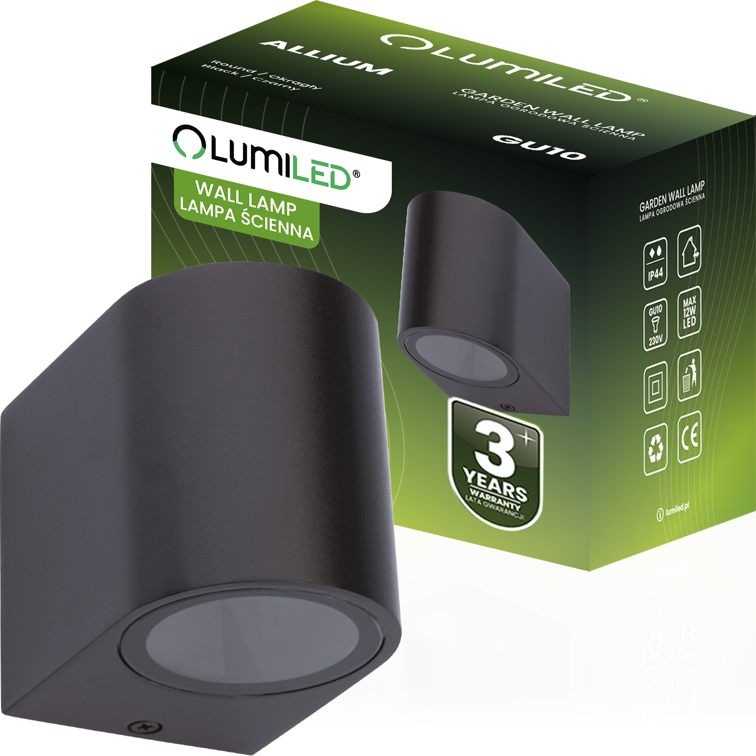 LUMILED Lampe d'extérieur Lampe d'extérieur Projecteur mural Applique d'extérieur Terrasse Façade IP44 noir rond GU10 Downlight Lampe d'entrée
