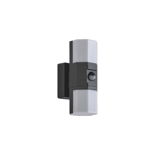 Eglo Applique mural extérieur LED Darfano, lampe de façade solaire avec détecteur de mouvement, éclairage pour terrasse et jardin, spot en plastique anthracite, blanc neutre, IP54