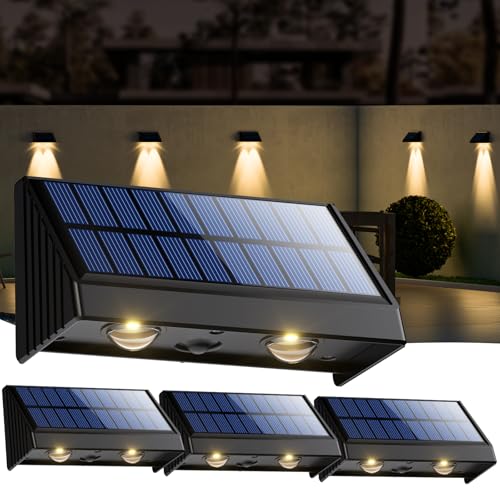 OUSFOT Applique Murale Exterieur Solaire 4 Pièces, Étanche IP65 Lampe Solaire Extérieur, 3200K Blanc Chaud Eclairage Exterieur Solaire pour Mur, Balustrade, Clôture, Jardin, Terrasse, Balcon, Escalier