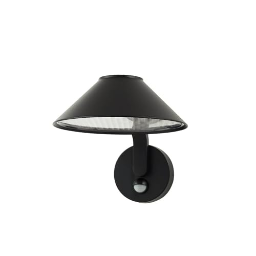 M Ledme - Applique LED solaire Black Flat 1W extérieur avec détecteur de mouvement et capteur crépusculaire, IP44, autonomie 6-8 h, éclairage solaire pour jardin, terrasse, entrée ou façade