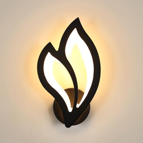 Goeco Applique Murale LED Interieur, 13W 1500LM Créatifs Moderne Lampe Murale en Forme de Fleur en Acrylique 3000K Lumière Blanche Chaude, Luminaire Murale pour Chambre, Salon, Couloir, Noir