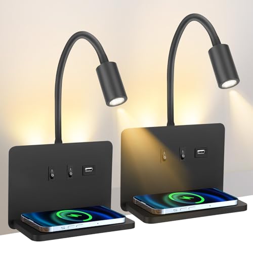Eirolace Liseuse de Chevet Murale avec port de charge USB et Base de Chargeur sans Fil, Lampe de Lecture Col de Cygne Flexible, Applique murale LED pour Salon Chambre tête de lit Lecture(2)