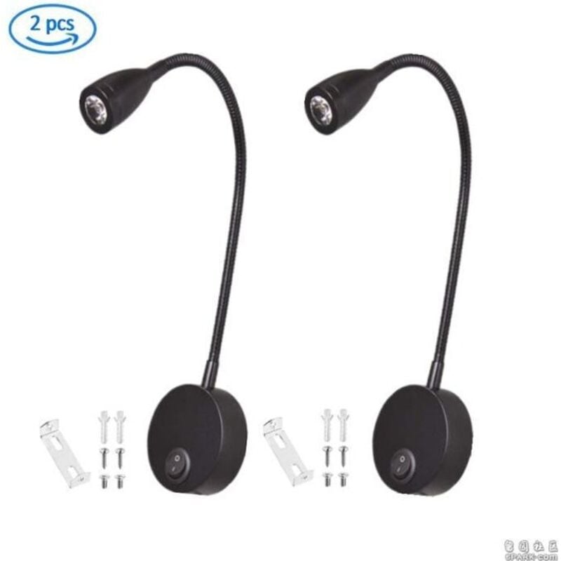 3W Noir Lampes de Lecture, TêTe de Lit Applique Murale Liseuse Encastré Interrupteur Poussoir Lampes Murales pour, Chambre