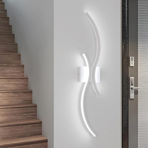 Comely Applique Murale Intérieure LED, Blanc Lignes Simples 27W 3000LM Lampe Murale Moderne, Luminaire Mural LED pour Chambre, Salon, Couloir, Escalier, Lumière Blanche Froide 6500K