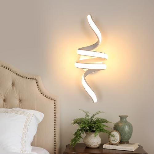Goeco Applique Mural LED Intérieure, 24W 2700LM 35CM Lampe Murale en Spirale Lumière Chaude 3000K, Moderne Applique LED en acrylique pour Chambre à Coucher, Salon, Cuisine, Blanc