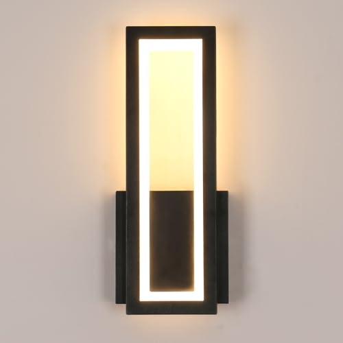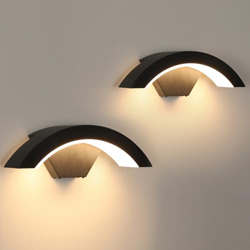 Goeco 2 Pack Applique Murale Extérieure LED, 12W 1300LM IP65 Étanche Lampe Murale 3000K Lumière Chaude, Luminaire Mural Noir pour Cour, Jardin, Chambre, Salon, 22.5CM x 8CM