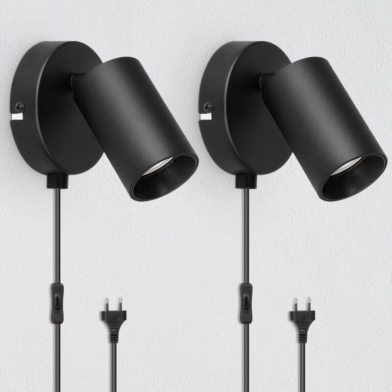 350° GU10 (Sans Ampoule) Applique Murale Chambre Vintage Lampe Murale Avec Interrupteur et Prise Spot Mural Noir Interieur luminaire Murale pour