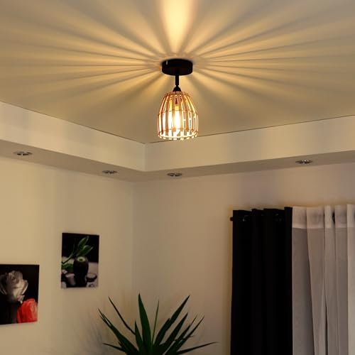 Applique Murale Rétro en Rotin De Bambou Applique Murale E Lampe D’entrée E27 Douille Loft Plafonnier Éclairage Mural en Bois pour Salle à Manger Chambre à Coucher Salon Restaut Couloirs