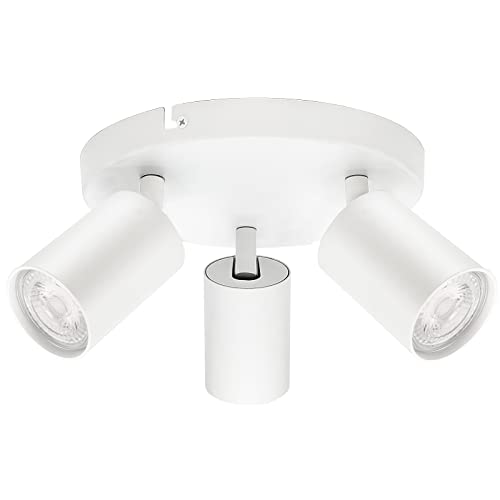 KYOTECH Plafonnier LED 3 Spots Orientables 3 GU10 Spots de plafond Pivotants & Orientables,Applique murale LED Blanc mat,livré sans ampoules