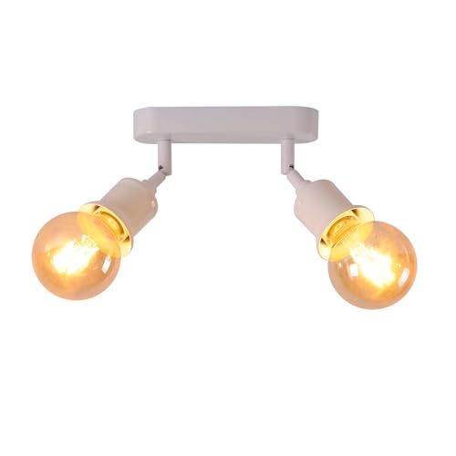 B.K.Licht Plafonnier/applique murale, spot bar design rétro, 2 spots orientables & pivotants, luminaire plafond vintage blanc, douilles E27, 60 Watt max, ampoules non fournies