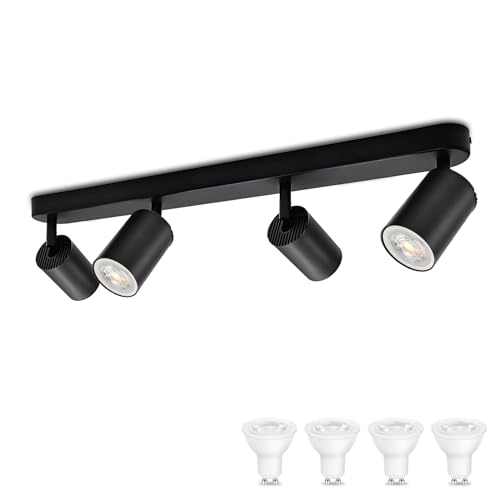 KYOTECH Plafonnier LED GU10 4 Spots Orientables 4 ampoules LED 5 W blanc chaud 3000K GU10 incluses,Spot Plafond GU10 Noir Applique Plafond Interieur Pivotants Applique murale LED